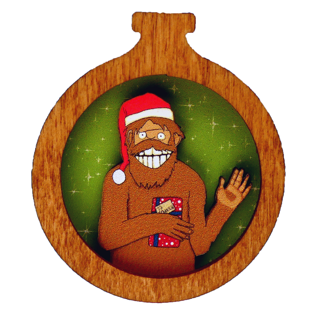 Santa Squatch is so happy to get a present with his name on it! Hang this cheery fella on your tree or review mirror and spread the mirth. Perfect for the Sasquatch lovers in your life.