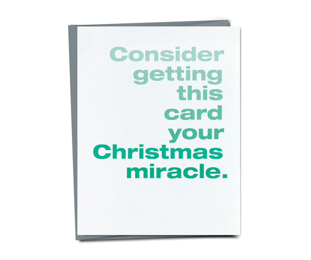Consider getting this card your Christmas Miracle.  Funny Holiday Card