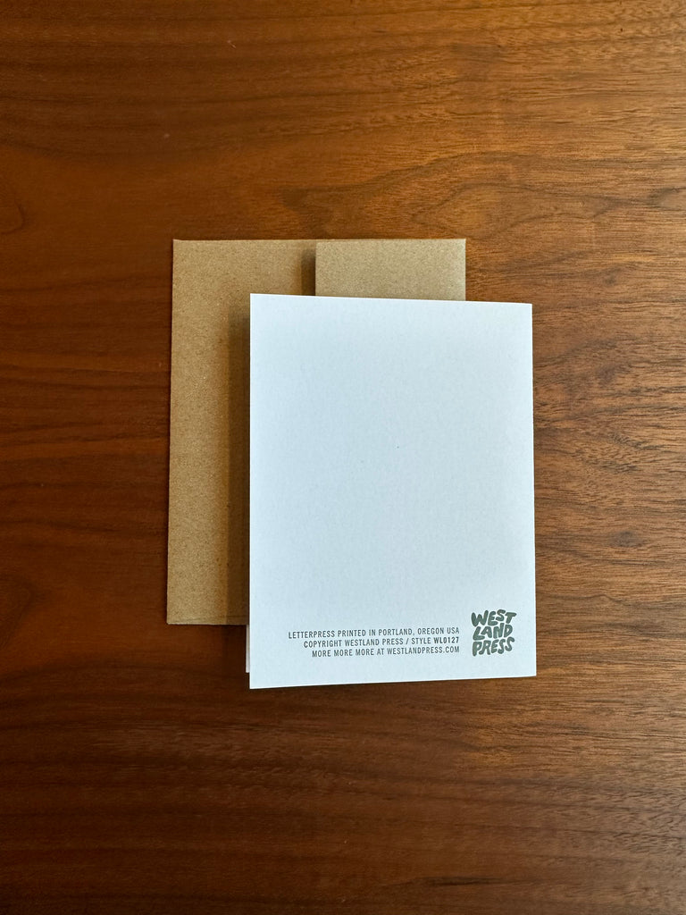 Folded notecard with kraft envelope measures 4.25" x 5.5" and is blank inside.